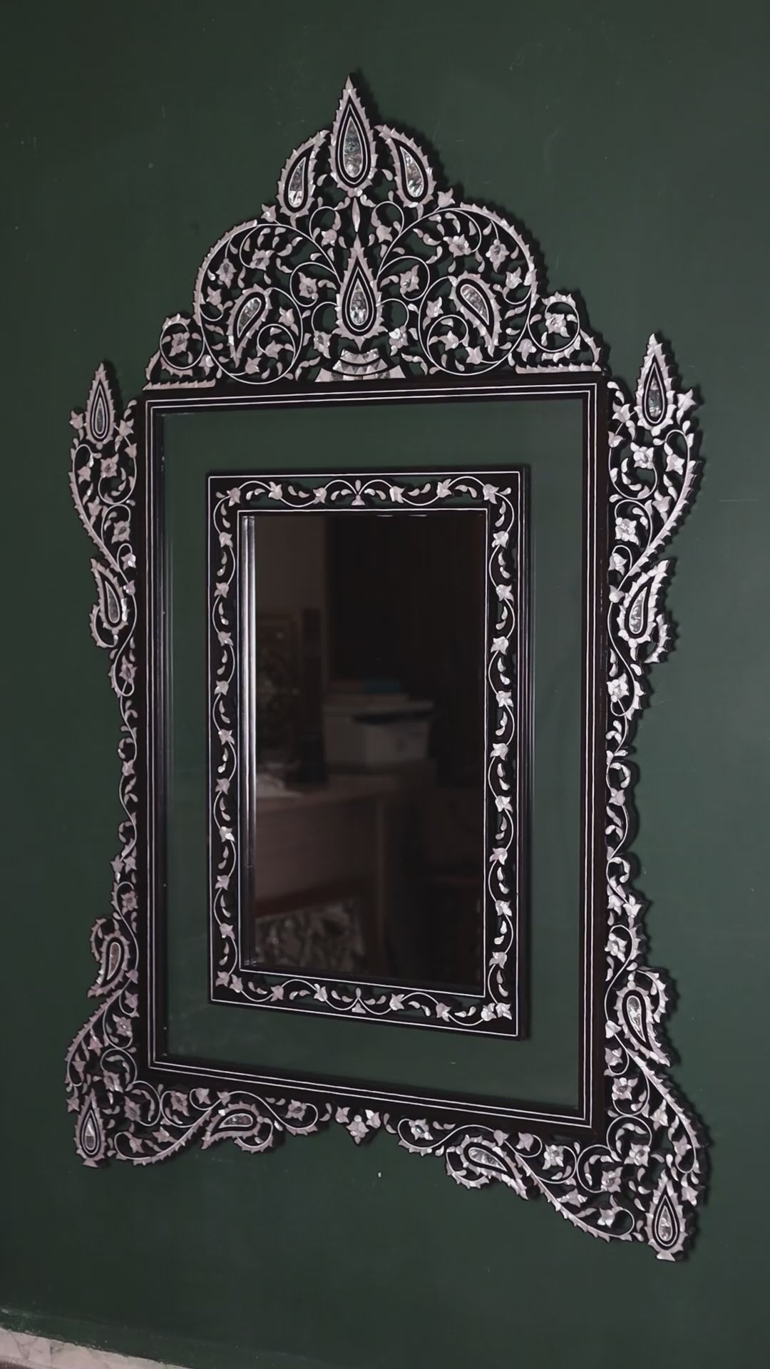 Handmade luxurious mirror with mother-of-pearl inlaid and lightened frame | Narjis collection